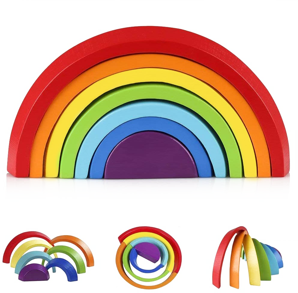Un juego de apilar que encaja perfectamente con la filosofía Montessori. Los niños podrán divertirse apilando estos arcos de madera de colores mientras desarrollan su motricidad fina. Un juego perfecto para mejorar la motricidad y ampliar la sensibilidad de los más pequeños a los distintos colores y formas. Además, aunque estén pensados para formar un arcoíris, con este juguete los niños podrán experimentar creando todo tipo de formas creativas.