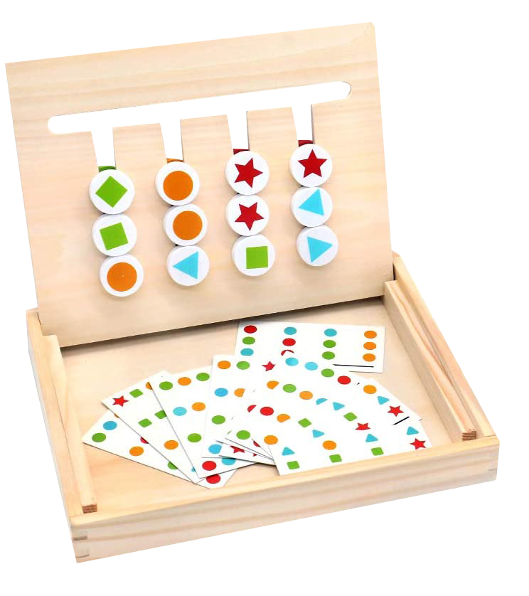 Lo que a primera vista parece un juego sencillo es en realidad un conjunto de hasta 36 tipos de juego diferentes. El tablero incluye 18 cartas, un reloj de arena que les ayudará a mejorar en su manejo del tiempo y un rompecabezas con formas simétricas. Con este juguete Montessori los niños podrán jugar durante horas y desarrollar la capacidad de pensar. El entretenimiento está garantizado.