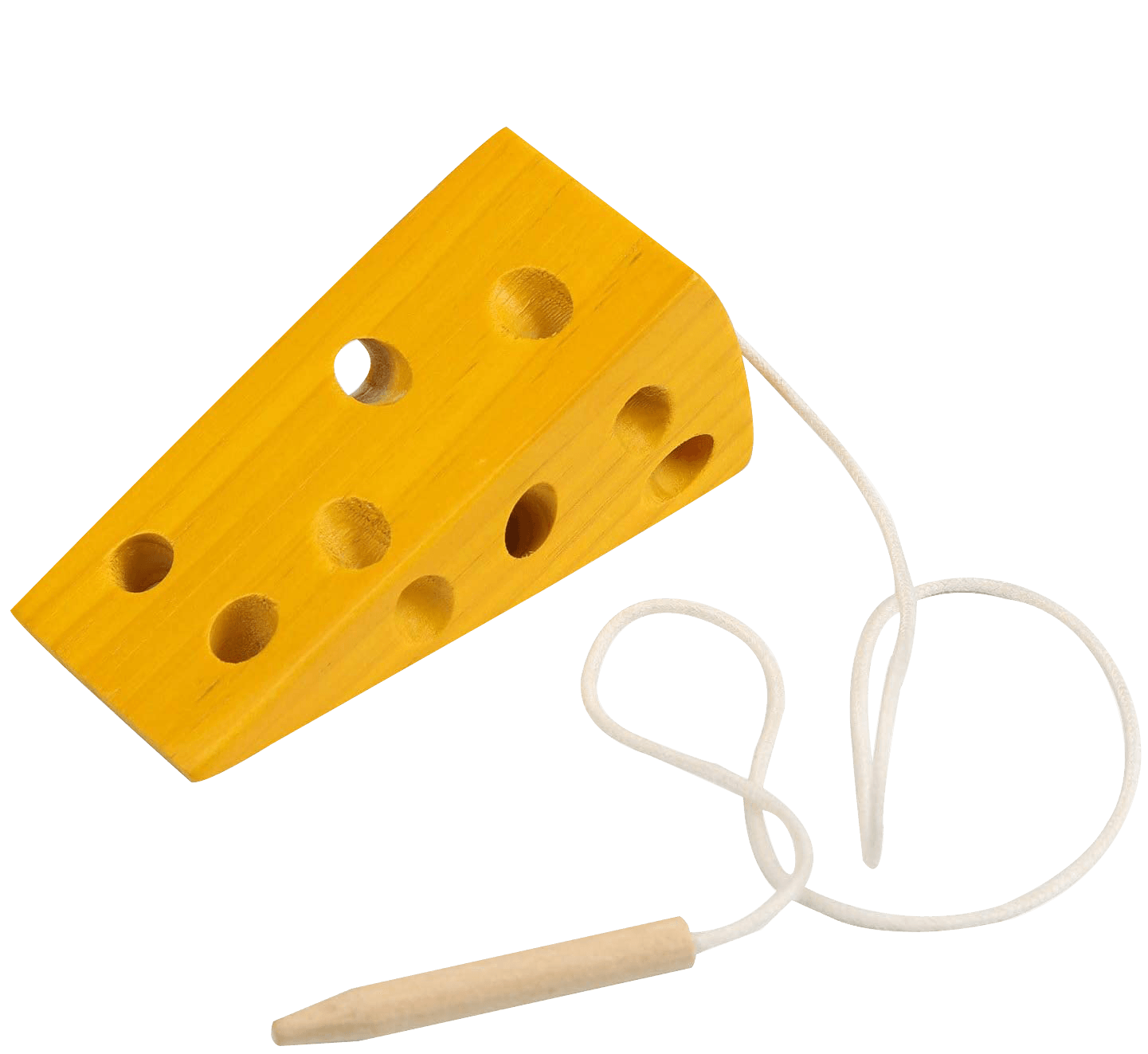 Un rompecabezas hecho de madera ecológica y superficie lisa con el que los niños podrán desarrollar su imaginación y su coordinación mano-ojo. Este juguete Montessori tiene la forma de un bloque de queso lleno de agujeros por el que atravesar un palito de madera pegado a una cuerda. Un juego entretenido con el que probar diferentes estrategias y divertirse ejercitando la mente.