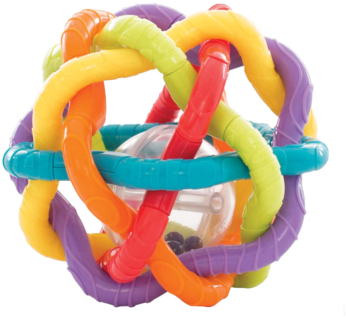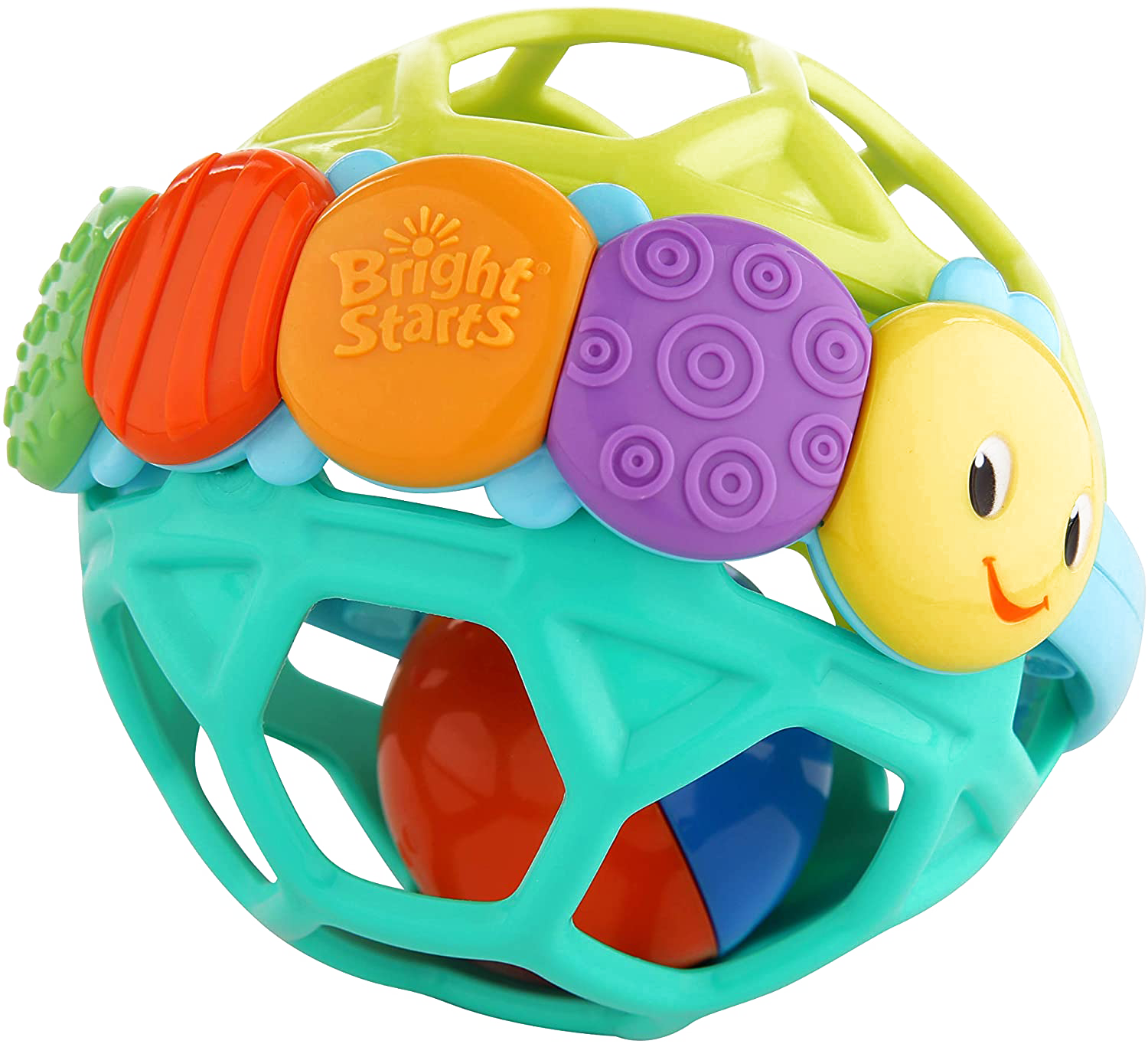 Otra bola sonajero, pero en este caso de la marca Bright Starts. Esta colorida bola está hecha de un plástico flexible que permitirá a los más pequeños doblarla y apretarla mientras juegan con el divertido personaje de la oruga que adorna este juguete. El entretenimiento perfecto para niños y niñas a partir de un mes.