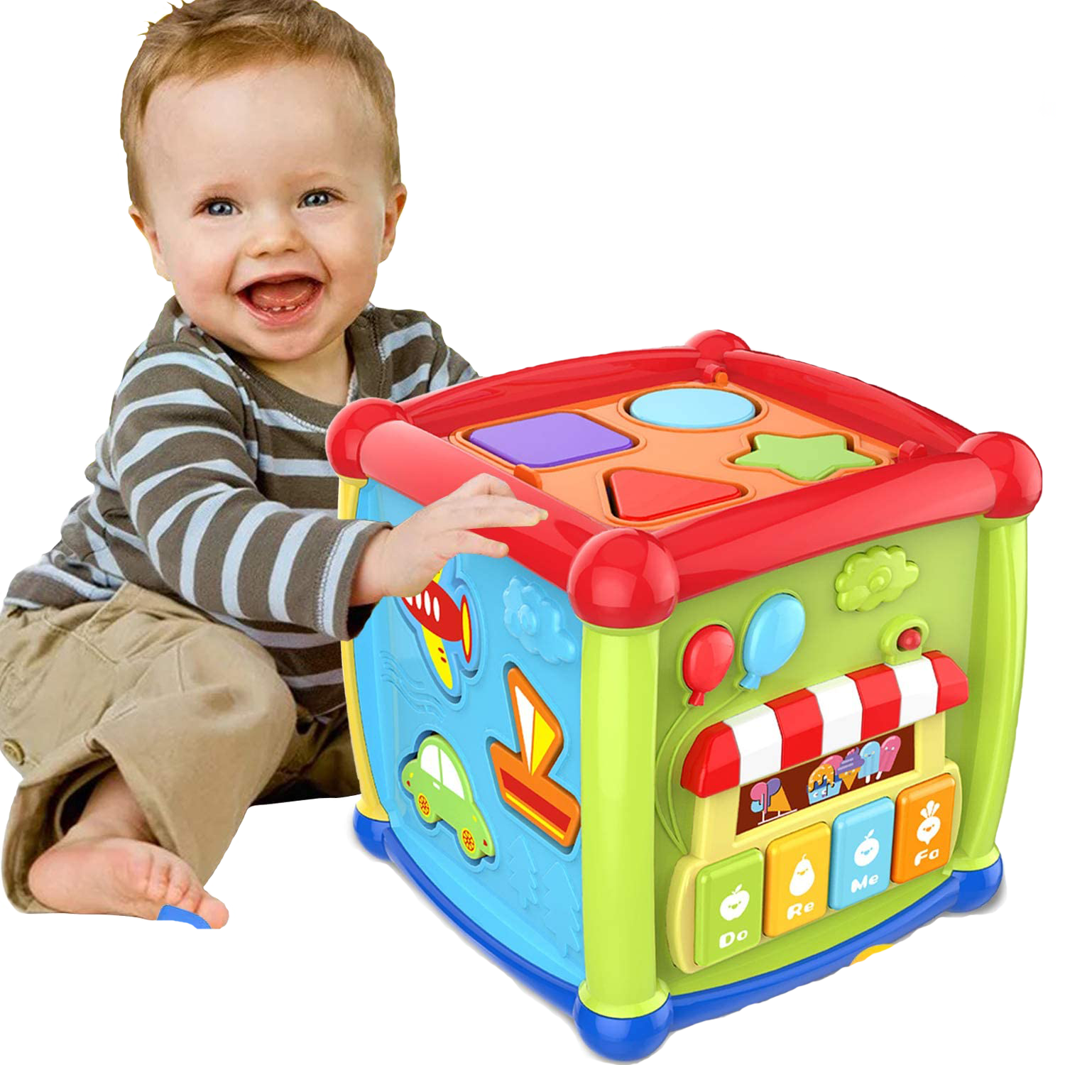 Este cubo de juguete apto para bebés entre 6 y 12 meses cuenta con todo lo necesario para fomentar la imaginación, el desarrollo de rompecabezas y la capacidad práctica en el juego de la primera infancia, además de mejorar las habilidades motoras y la capacidad de resolución de problemas. El juego cuenta con música, formas, colores y hasta un juego de piano. 6 juegos en 1 para cualquier bebé.