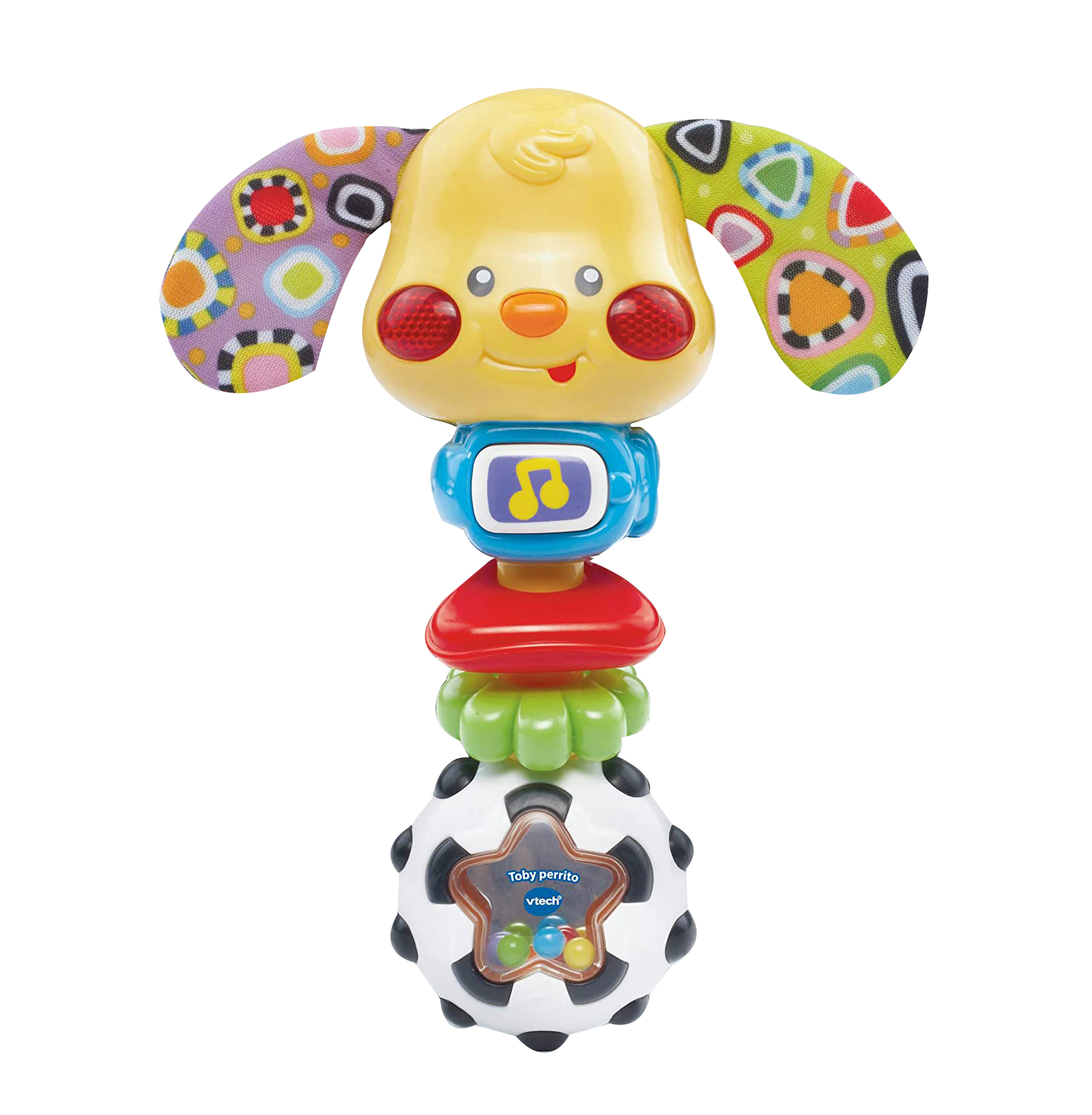 Más de 20 canciones y sonidos distintos se activarán al mover este simpático perrito electrónico de VTech. Con distintos colores y texturas para desarrollar todos los sentidos de los bebés. El único inconveniente de este simpático juguete es que necesita pilas alcalinas (las que incluye tienen solamente fines demostrativos).