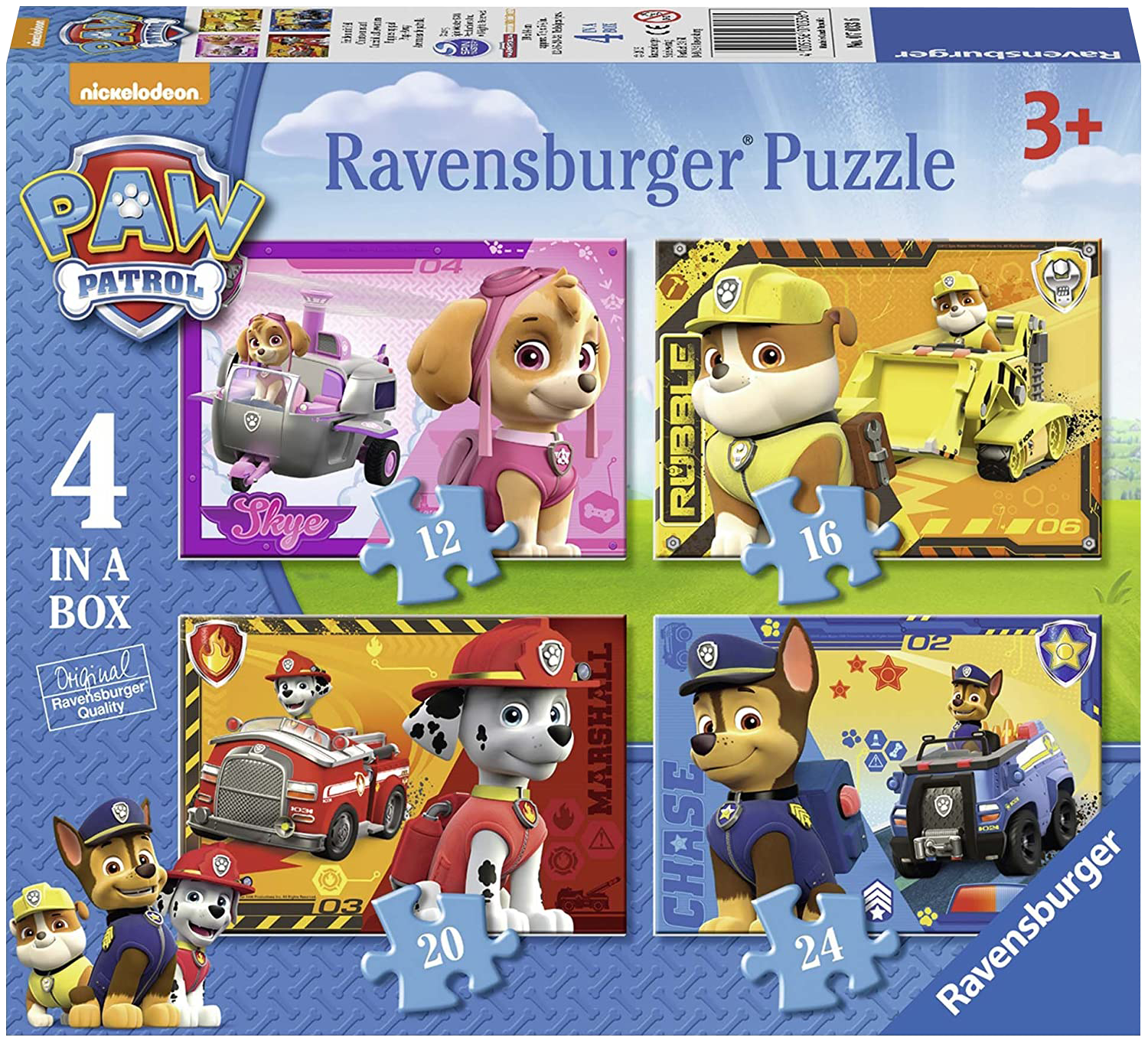 Puzles progresivos de 12, 16,20 y 24 piezas en los que las estrellas son los personajes de la Patrulla Canina. A medida que juegan, los niños desarrollarán habilidades de concentración y creatividad. Estos puzles son además un pasatiempo perfecto para disfrutar de sus personajes preferidos mientras aprenden concentración y ganan habilidades resolutivas.