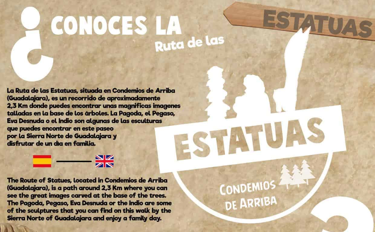 Cómo llegar: Para hacer la Ruta de las Estatuas debéis ir hasta la localidad de Condemios de Arriba. Una vez paseis el pueblo y salgais de él hacia el oeste, hay que coger el segundo camino que sale de la carretera por vuestra izquierda. OJO! El primero que encontraréis a la izquierda os lleva hasta el campamento, ese no, es el siguiente.
