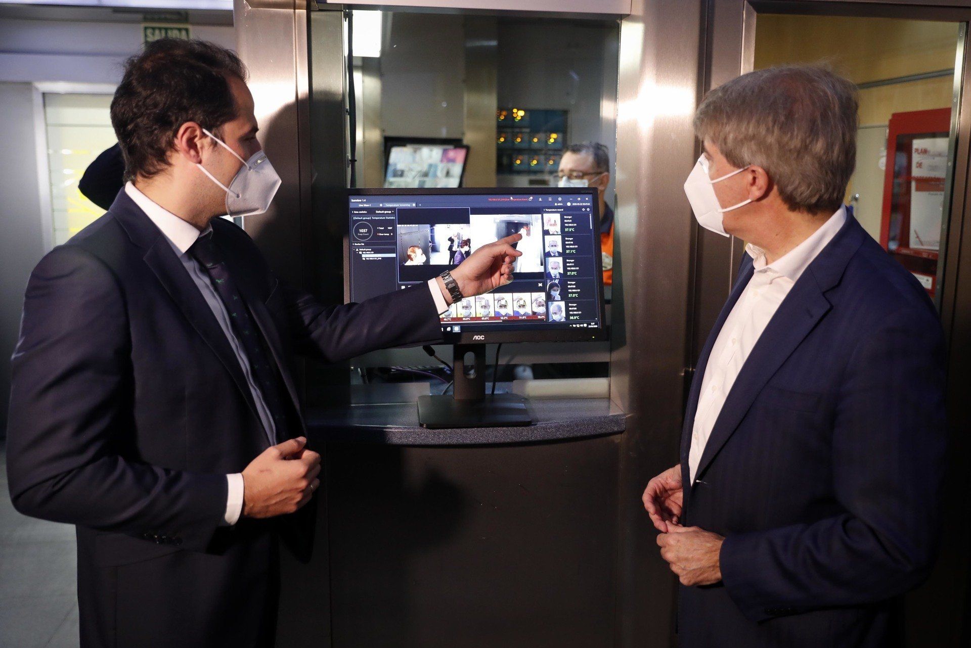 En compañía del consejero de Transportes, Movilidad e Infraestructuras, Ángel Garrido Aguado avanza la instalación de una cámara en el Puesto de Mando de Metro para medir la temperatura a empleados del suburbano