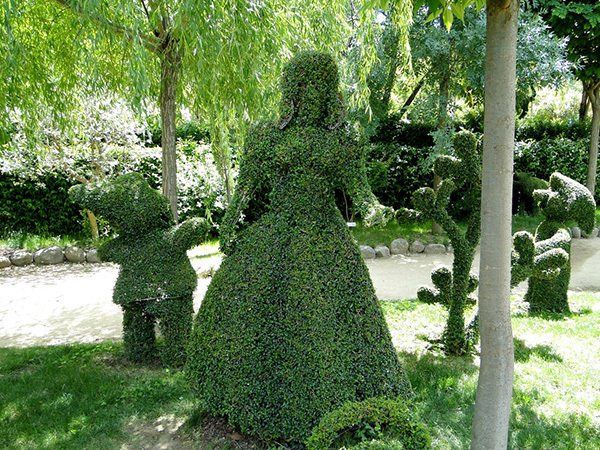 Junto con la exposición de más de 500 especies vegetales, El Bosque Encantado maravillará a toda la familia con laberintos, colecciones de cactus y todo tipo de creaciones con arbustos: Un dragón de cuatro metros, un minotauro, un pianista, animales de diferente índole .... Hasta con el mismísimo Don Quijote te podrás encontrar en el paseo.