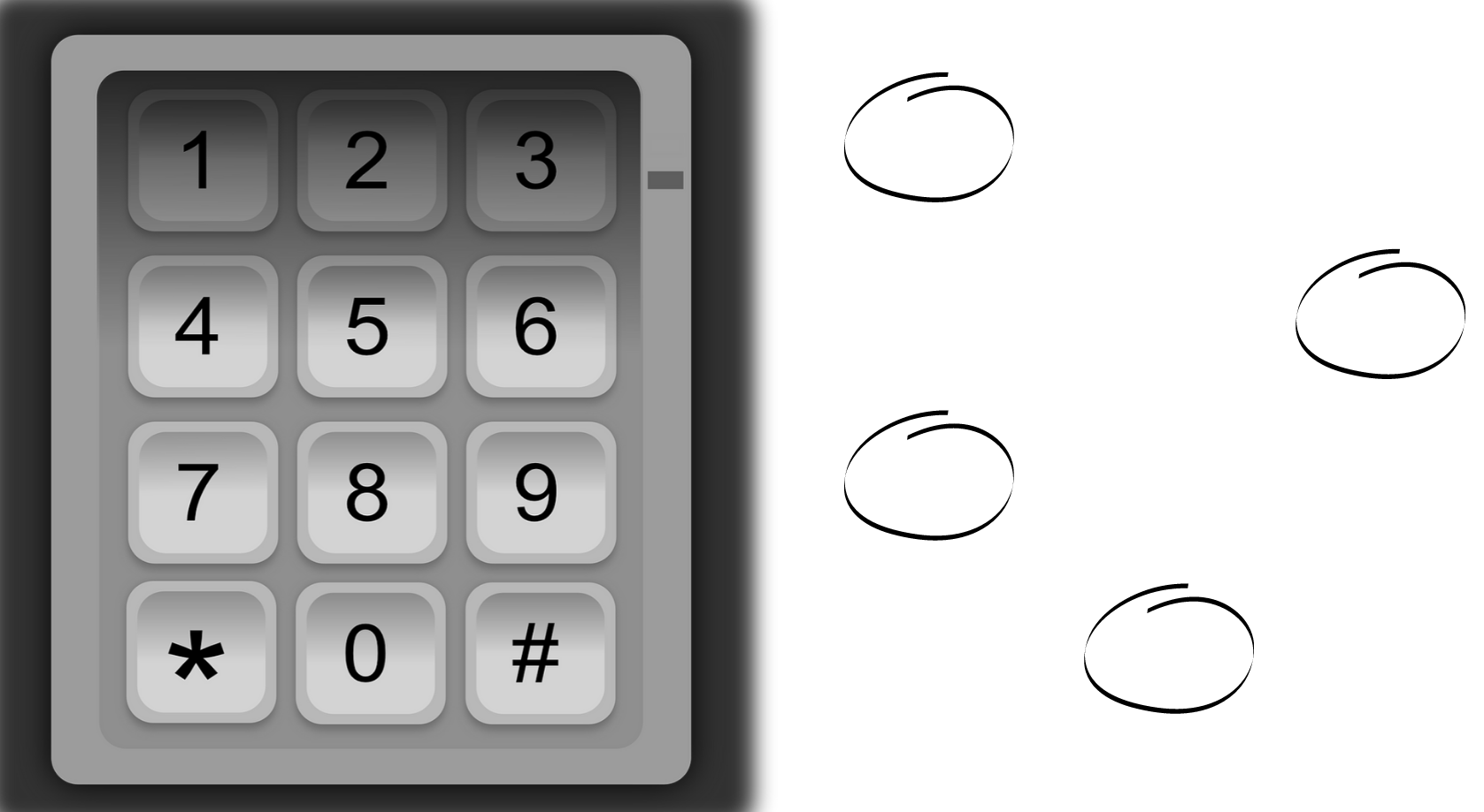 ¿Cómo descubrir la pista? Prueba a imaginar que números teclearías según los círculos en fondo blanco.
