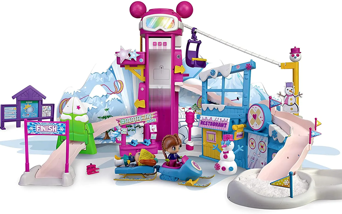 Otro de los juguetes destacados (que además ha caído hoy en nuestra casa) es El Parque de Nieve Pinypon, un juego muy divertido y completo con muchos detalles: representa una estación de esquí de lo más completa y divertida, con varias pistas, un ascensor y un telesilla. También cuenta con un restaurante; una moto de nieve y hasta una clínica en la que atender a los lesionados. Por si todo esto fuera poco incluye una figura de Pinypon y un kit para hacer nieve mágica , dándole un toque muy divertido y real al escenario.