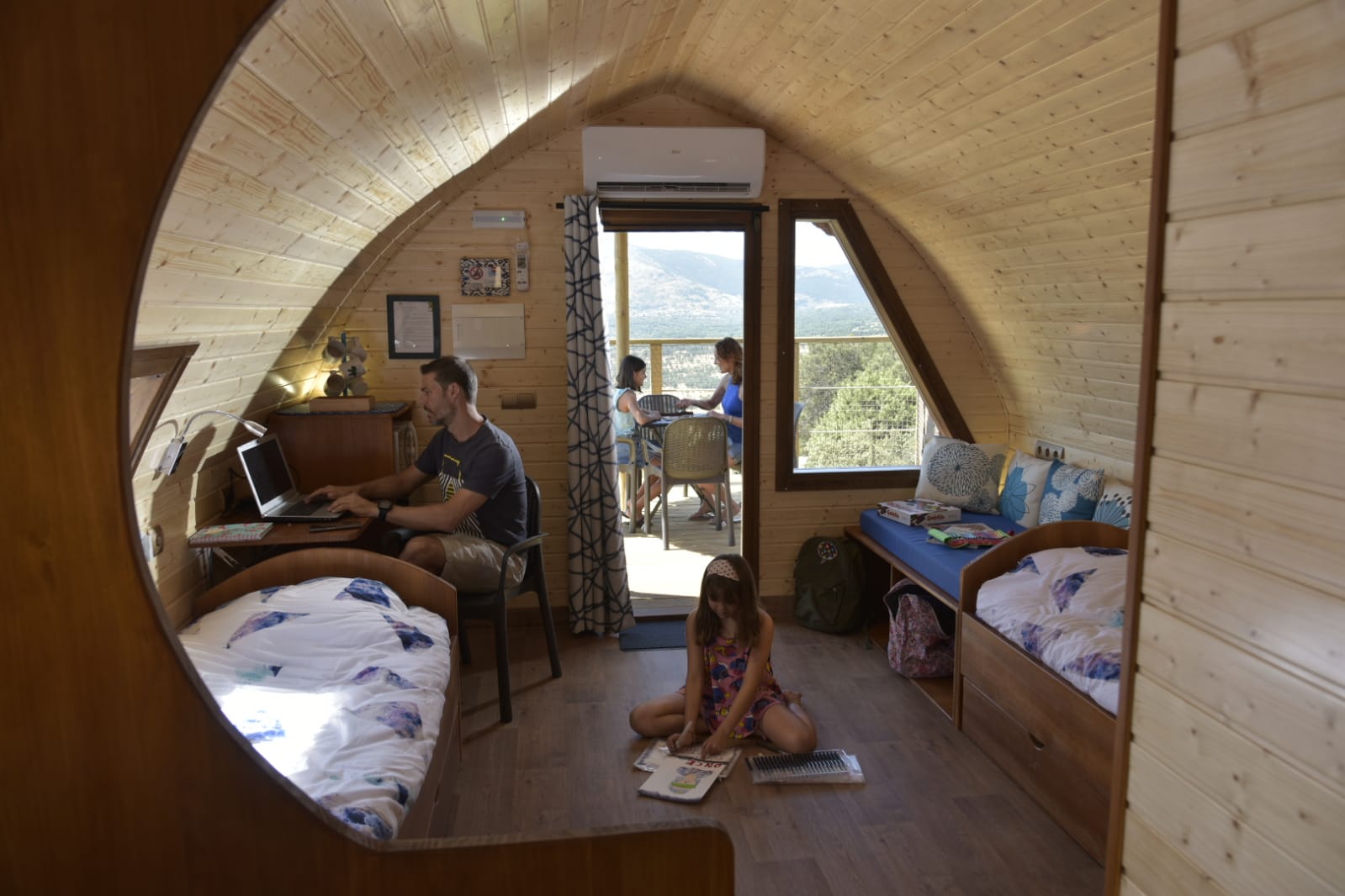 Las cabañas en los árboles de Monte Holiday son una experiencia única de inmersión total en plena naturaleza. Situadas sobre las copas de los árboles o entre ellas, a una altura de entre 4 y 7 metros de altura y totalmente equipadas con todo lo necesario: baño completo, aparato de frío/calor, camas con cajones inferiores donde guardar tus cosas, set de desayuno y hasta un precioso farolillo solar, que completa el kit de aventurero.
