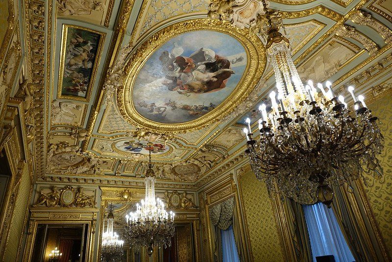 Algunas de sus salas están decoradas con tapices de la Fábrica de Gobelicos y sus techos están adornados con pinturas mitológicas y elementos dorados. Sus suelos de madera, las grandes lámparas francesas y las alfombras de la Real Fábrica de tapices son algunos de los elementos que completan la esencia del palacio.
