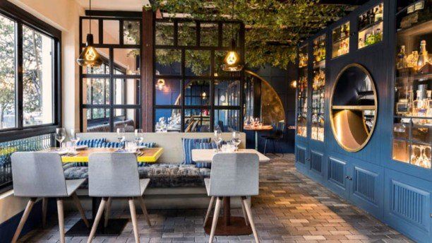 BiBo Madrid refleja la esencia de la cocina viajera de BiBo a través del gran globo aerostático que pende sobre la barra y el concepto de una Andalucía cosmopolita y elegante.