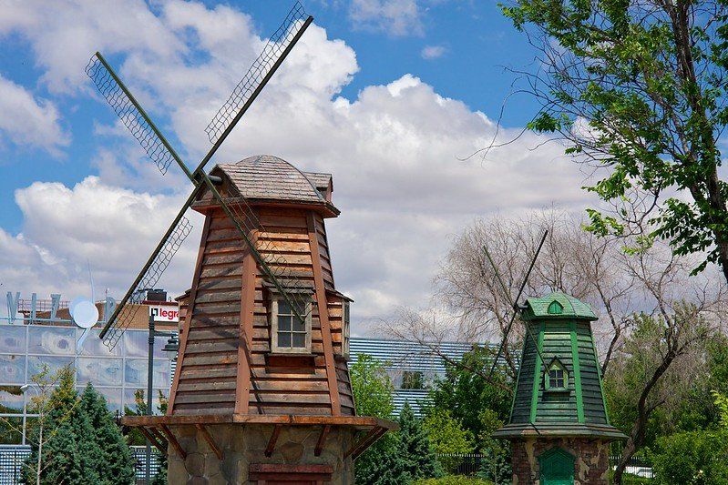 En este parque los molinos son el elemento fundamental, hay uno grande, el principal, del que sale un gran tobogán y a lo largo de la zona podemos encontrar otros molinos (más pequeños) a los que puedes acceder escalando o a través de cuerdas.