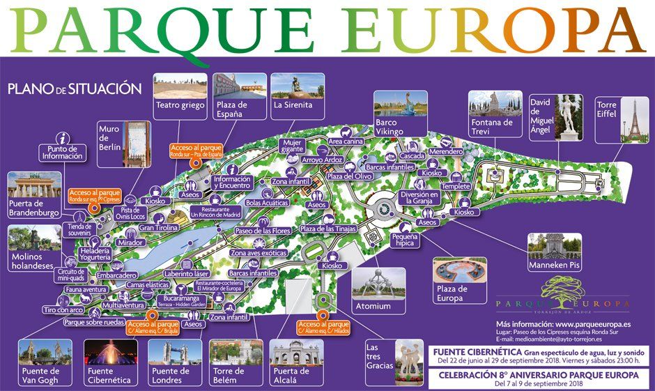 El Parque Europa constituye una gran zona verde y de ocio en Torrejón de Ardoz, a apenas 25 minutos de Madrid Capital. Cuenta con una fuente cibernética inédita (sólo hay tres fuentes así en el mundo), monumentos de diversos países europeos y una Granja con todo lo necesario para hacer las delicias de los más pequeños.